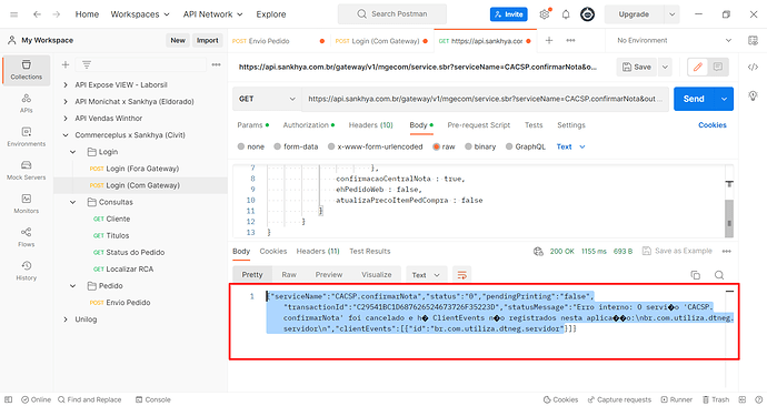 Então estou tentando usar o service CACSP.confirmarNota, mas está retornando o erro do print. Sabem como posso confirmar o pedido?