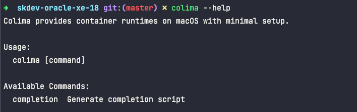 colima start --profile skdev-docker --arch x86_64 --memory 4 --disk 50