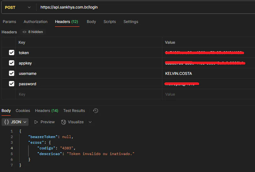 Token invalido ou inativado