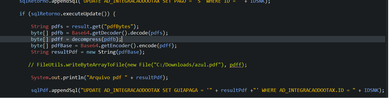 Estou realizando uma integração onde capturo um pdf de um outro sistema e necessito inserir em campo arquivo criado em uma tabela adicional.